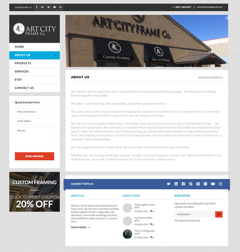 Art City Frame Co. lacked an online presence making it difficult for their clients to find the information they were looking for.